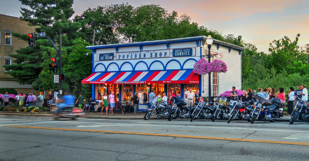 In Chagrin Falls, the Popcorn Shop operates from a former gas station at the top of the town’s namesake waterfall. Despite being barely larger than most walk-in closets, this tiny establishment creates summer lines that stretch down the block. But unlike most waiting experiences, this one comes with built-in entertainment: waterfall views and people-watching that reveals the genuine friendliness of small-town life.